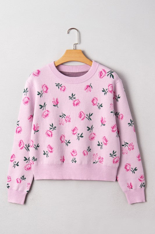 This sweater brings a fun, breezy vibe to your wardrobe. With its relaxed drop shoulder design and playful cropped length, it’s perfect for layering or rocking on its own. Soft, comfortable fabric pairs beautifully with your favorite jeans or skirts, making every day feel a little brighter and more carefree. Add a pop of floral charm to your look that’s as lively as you are! Viscose/Polyester/Poly